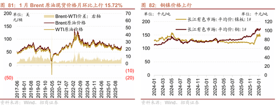 1月国际原油价钱上行,化工产物价钱指数上行。截至1月29日,Brent原油现货价钱月环比上行15。72%,WTI原油现货价钱月环比上行12。64%。截至1月29日,1月化工产物价钱指数月环比上行4。28%。无机化工品期货价钱大都上行,无机化工品遍及上行,此中燃料油、沥青等涨幅居前。1月工业金属价钱大都上行,库存大都上行。铜、铝、锌、镍、锡价钱环比上行,钴、铅价钱环比下行;铝、铅库存下行,铜、锌、锡、镍库存上行。贵金属方面,黄金、白银期现货价钱上行。小金属方面,锑价钱上行,稀土价钱上行。