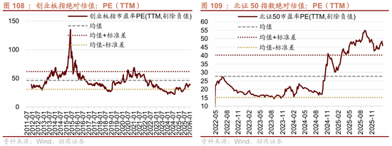 本年一月末创业板指绝对估值程度为39。3X(处于2010年以来37。7%分位),比拟客岁十二月末上行1。5x。本年一月末北证50指数绝对估值程度为46。0X(处于汗青以来84。3%分位),比拟客岁十二月末上行2。2x。