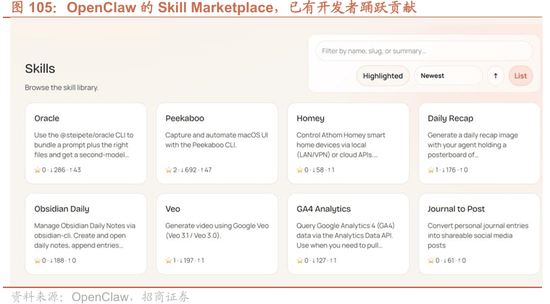 但若是把视角再往前推一步:既然视觉操做的焦点成本来自“看—猜—点”的频频试错,那么更省成本、也更可管理的径,往往不是把视觉做得更强,而是尽可能让操做变成可挪用的接口。于是第三种标的目的更“工程化”:取其让模子正在 GUI 上频频试错,不如让软件把能力以可挪用的体例出来——也就是 API/东西接口优先,视觉做为兜底。正在 AI 时代之前,像 Microsoft 365 这类企业软件就持久供给从动化接口;而 Model Context Protocol (MCP) 的呈现,则把“模子 ↔ 东西/数据源”的毗连进一步尺度化,答应开辟者用同一和谈把外部系统、平安鸿沟取挪用体例拼拆进代办署理工做流中。基于这种趋向,所谓“结局”更可能是:高频、确定性的操做走指令集/东西挪用;低频、不成布局化的场景再交给视觉去补位。OpenClaw次要秉承的就是这种手艺线,这类产物更像是正在把“能挪用的一切”先做成可组合的技术/东西层:社区里对各类 App 的“节制权”最终大要率不是靠模子盯着 GUI 去点来点去,而是靠一层层更不变的接口( API、RPA/从动化毗连器、以及以 MCP server 形式出来的东西端点)把能力显式化、可审计化,然后让代办署理正在这些端点之间编排工做流。进一步说,若是这类产物实要正在企业端大范畴使用、成为所谓“数字员工”,形态也几乎必然会到“东西/接口驱动的代办署理”:把高频、确定性的营业动做沉淀成可管理的东西挪用(身份认证、最小权限、审计日记、审批/人工确认),把长尾的非布局化场景才交给 GUI/视觉去补位。也正由于这一套管理需求的存正在,App 开辟者会被持续“推着”更不变的接口来便利 AI 接入——因而 GUI 更像是过渡期的手艺;更持久来看,行业大要率会构成某种更通用的和谈取接入层,使我们熟知的软件更倾向于让大模子“按和谈挪用”而不是“模仿点击”。先前我们提到OpenClaw次要是基于各类App的接口来实现操控,正在这个环节中,OpenClaw较为伶俐、也较为合适当前AI社区趋向的一点是,它只做了通用内核,把接入分歧App的工做交给社区开辟者,最初市道上就呈现了各色各样的关于各类东西的接入项目,这就导致了对于终端用户而言,建立从动化工做流的过程,就像是正在玩一场高维度的“拼积木”逛戏——通过加载分歧的功能模块,将内核取具体的 App 操控能力无缝拼接。支持这一积木式生态的底层契约,恰是 Anthropic 推出的“Skills”(技术包)。取简单的 API 挪用分歧,一个成熟的 Skill 是一种“夹杂型智能载体”。它不只封拆了施行动做的脚本(s),更内嵌了特定场景下的动态提醒词(Contextual Prompts)取操做(Guidelines)。简单来说,Skill 不只仅是把“手”交给 AI,更是把“经验”教授给 AI——它明白了正在何种营业场景下挪用哪个脚本,以及正在碰到非常时查阅哪份仿单。这种架构最诱人之处正在于其“递归嵌套”能力(Recursive Capability)。一个从 Skill 能够像批示官一样,按照使命进度动态挪用子 Skill。例如,AI 正在施行“财报阐发”这一从 Skill 时,若碰到加密的 PDF 文件,它能够从动调取并阅读“解密东西”的子,完成操做后回归从线。这种层级化的布局,付与了 OpenClaw 处置极高复杂度使命的可能。为了这终身态,Peter Steinberger 正在 OpenClaw 官网建立了去核心化的 Skill Marketplace(技术市场)。这使得全球的小我开辟者不只能上传本人编写的“技术”,还能基于他人的模块进行二次封拆取迭代。这品种似 App Store 的飞轮效应,正正在让 OpenClaw 敏捷从一个单一东西进化为复杂的从动化操做系统。