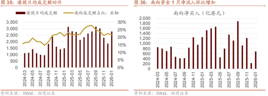 南向资金1月延续净流入趋向,净买入690亿港元,环比大幅添加。一方面公募基金港股持仓高于基准的扰动告一段落,另一方面险资开门红、设置装备摆设需求兴旺,为南向资金次要增量。