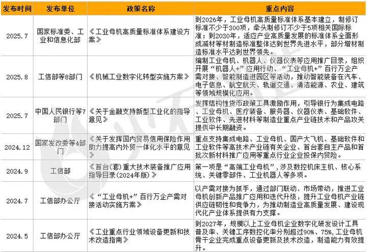 工业母机做为制制业的“基石”,遭到国度高度注沉。近两年我国正在工业母机范畴的政策支撑从手艺攻关、立异系统、财务、金融、尺度扶植等方面全方位发力,鞭策其高质量成长。